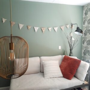 vlaggenlijn met 2 maten vlaggetjes van stof en bruin en lichtbruin